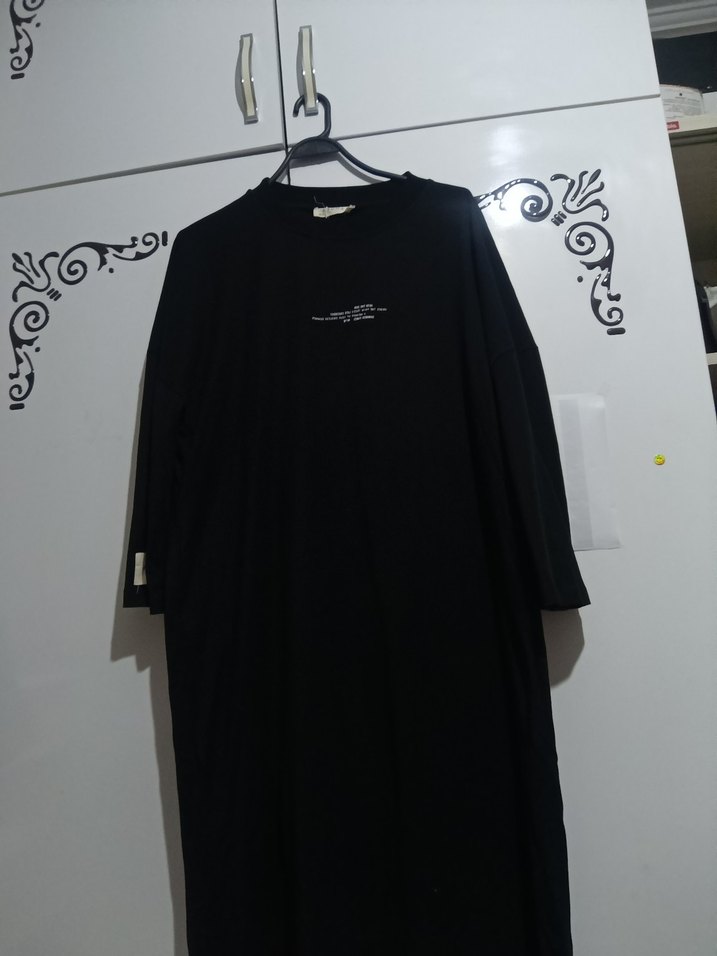 Siyah renkli, uzun kollu, yuvarlak yaka ve salaş kesime sahip drapeli ve baskılı detaylıdır. Günlük rahat kullanıma uygundur. s m beden 1 kere giyildi