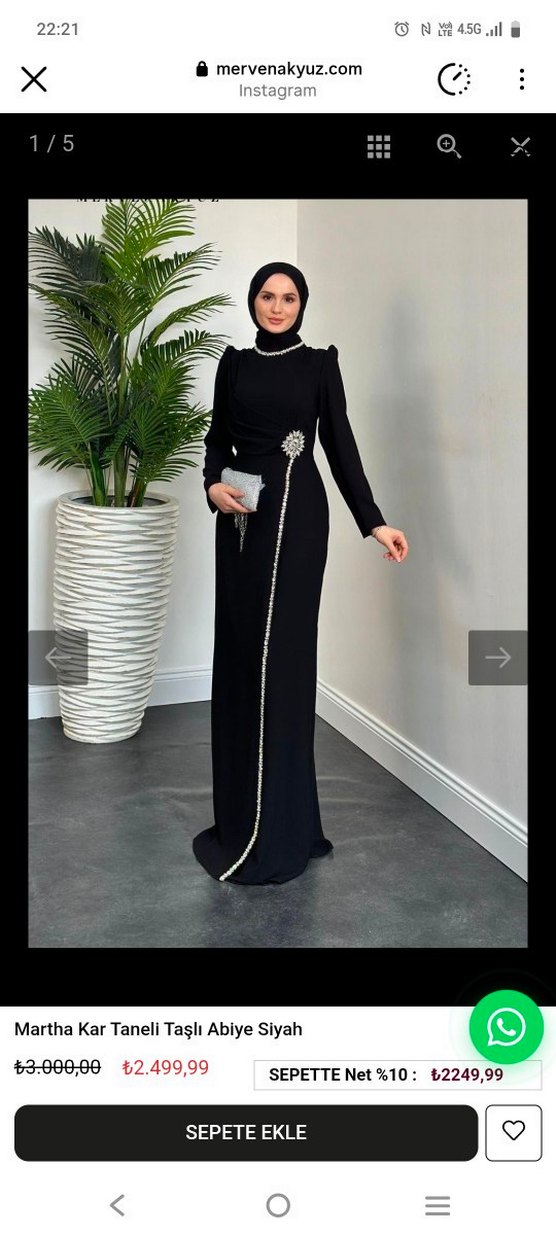 Siyah, uzun kollu ve yüksek yakalı bu abiye elbise işlemeli detaylara sahiptir. Drapeli ve rahat kesimlidir, düğünler için uygundur.