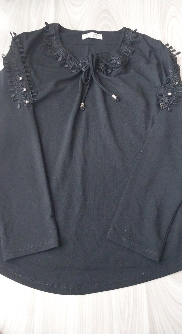 Uzun kollu, nakışlı detaylara sahip siyah, bol kesim kadın bluz. Yuvarlak yakalı ve düğmeli tasarıma sahiptir. Günlük rahat kullanıma uygundur.