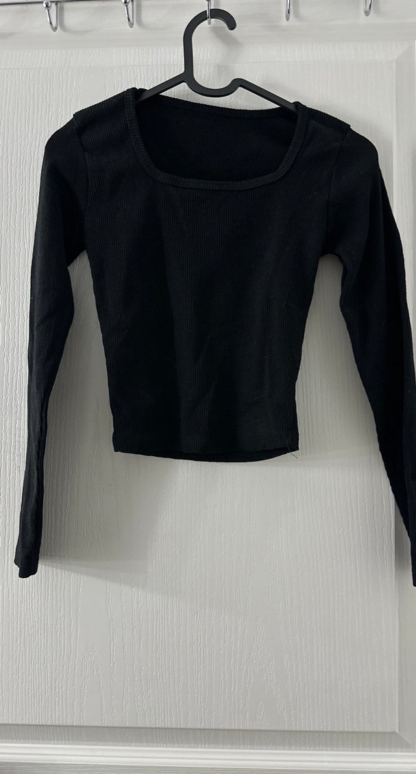 Siyah renkte, uzun kollu ve bisiklet yaka, dar kesim kadın bluz. Minimalist goth tarzıyla günlük kullanıma uygun, sade ve şık bir tasarım.