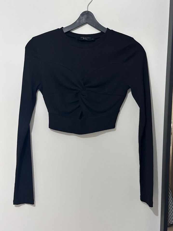 Siyah renkli, uzun kollu, yuvarlak yakalı, vücuda oturan kesime sahip kadın bluzudur. Karın kısmında bir pencere vardır