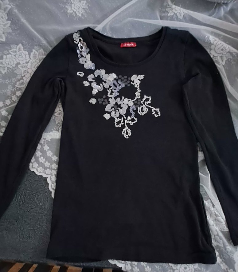 Siyah, uzun kollu, yuvarlak yaka ve ön kısmında çiçek desenleri bulunan, vücuda oturan kadın bluzudur. gotik tarzda gündelik kullanıma uygundur. sayılı ve temiz kullanıldı.