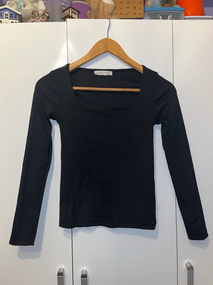 Siyah, uzun kollu ve tek renkli, tekne yakalı, günlük sokak stili için rahat ve şık bir kadın bluzudur. Esnektir. S/M bedenlere uygundur.