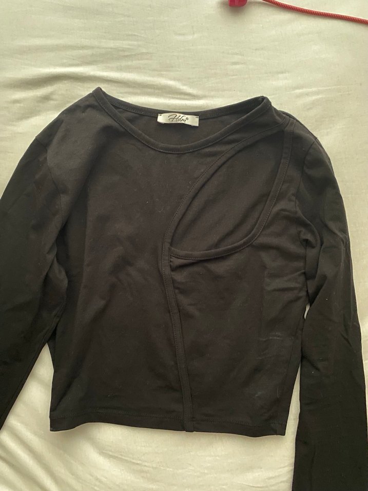Siyah, uzun kollu, dar kesim kadın bluz, yuvarlak yaka ve şık yırtmaç detayı ile. Keten kumaştan, minimalist ve sokak stili uyumlu.