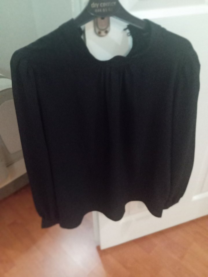 Siyah renkli, yuvarlak yaka ve uzun kollu kadın bluzudur. Midi boyda, bol kesim ve yumuşak sentetik kumaştan yapılmıştır. Günlük kullanım için şık ve sade goth tarzını yansıtır.