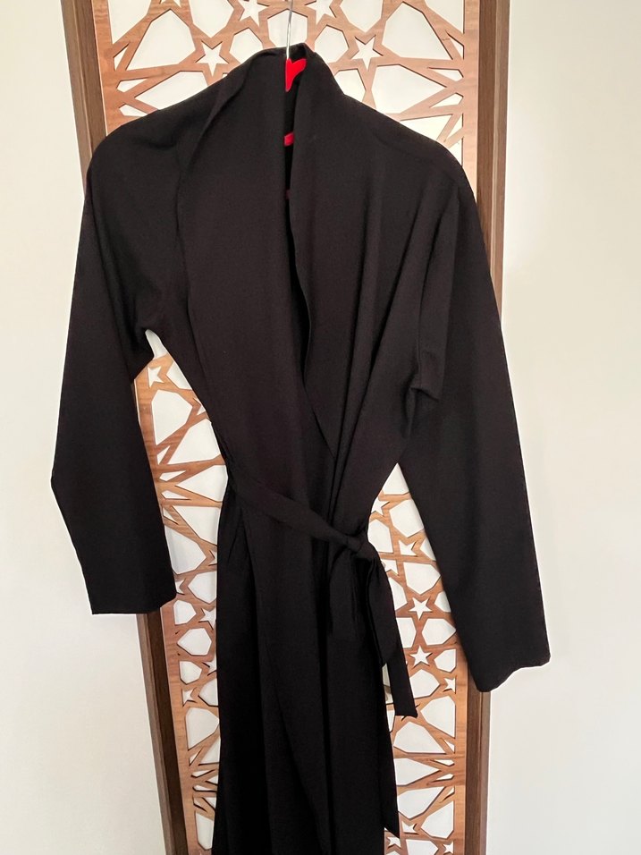Kadınlar için uzun kollu, düz siyah renkte, minimalist ve çağdaş tarzda . Rahat kesim ve şık görünüm sunar.
