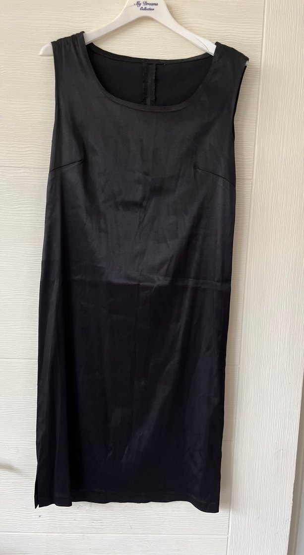Bu siyah uzun gece elbisesi, kayık yaka , kolsuz tasarımıyla ofis ortamına uygun düzenli kesime sahiptir.