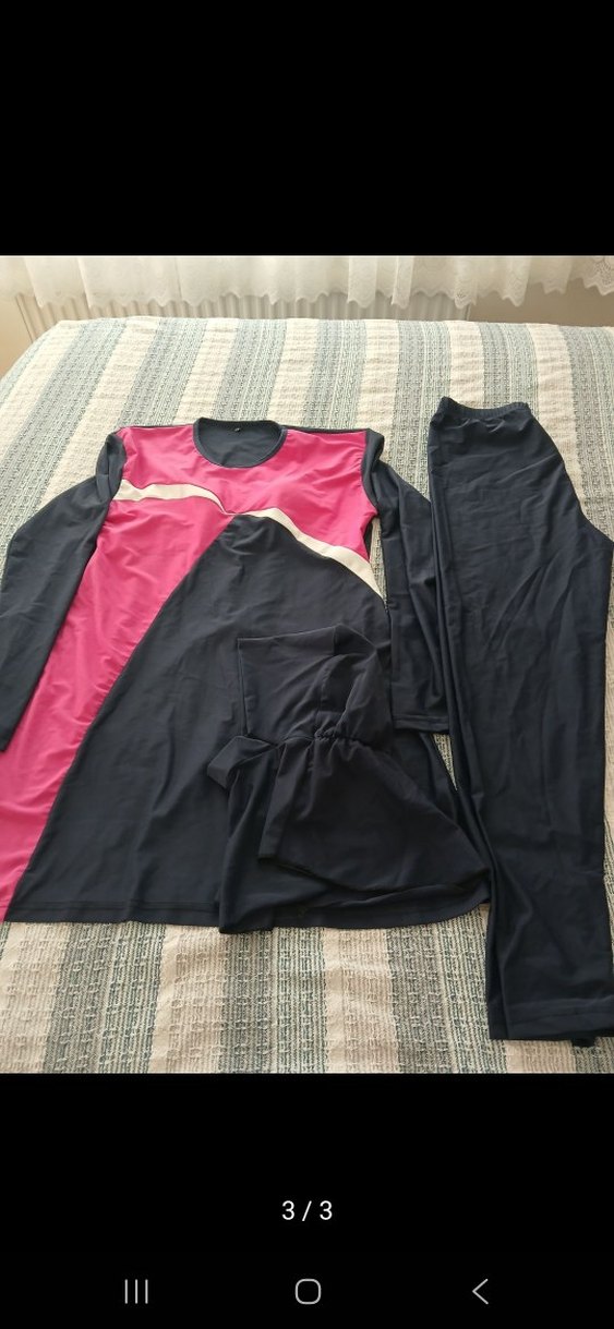 Kadınlar için siyah-pembe renk kombinasyonlu, uzun kollu, drapeli ve vücuda oturan eşofman üstü ile siyah uzun pantolondan oluşan takım. Günlük kullanım için uygun, yuvarlak yaka ve sentetik kumaş.