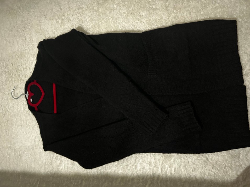 Siyah, uzun kollu, vücuda oturan kadın hırka cep detaylı 1 kez giyildi küçük geliyor bana standart beden. Çizme ile giyilince çok şık görünüyor. ❤️