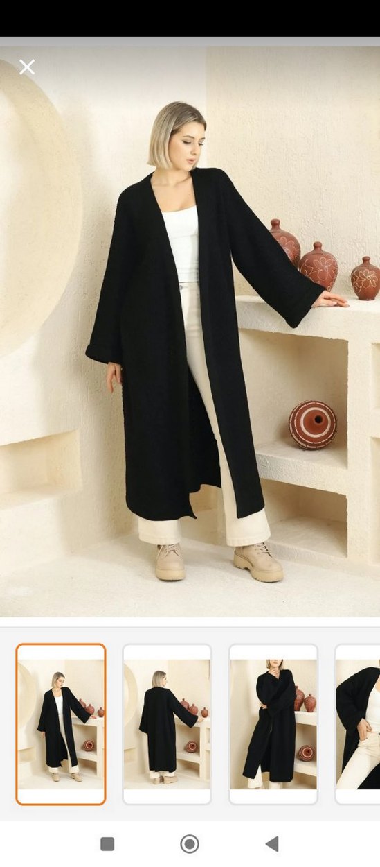 Siyah, uzun kollu, yakalı ve rahat kesime sahip kadın kabanı. Yumuşak ve sıcak kumaştan üretilmiştir, gündelik kullanıma uygundur.