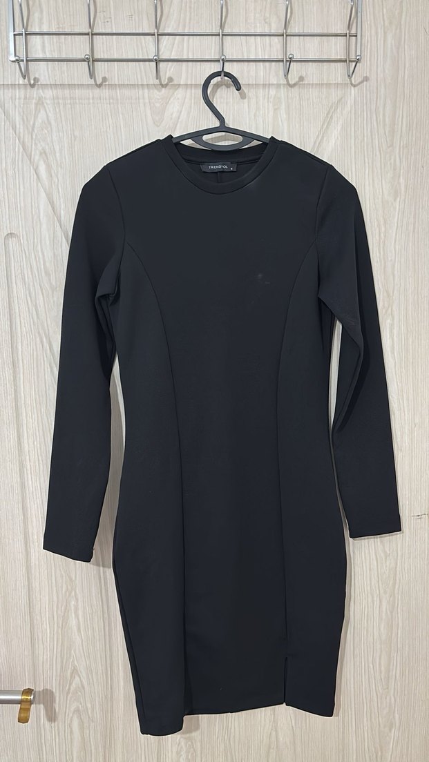 Siyah, uzun kollu, bisiklet yaka ve vücuda oturan kadın triko elbise. Desensiz ve sade tasarımıyla günlük kullanıma uygun, şık ve rahat bir görünüm sunar.