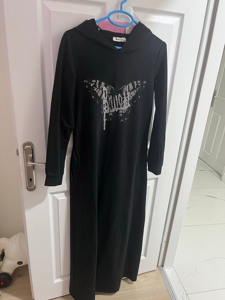 Uzun siyah tunik, uzun kollu spor elbise 1-2 kez kullanildi
