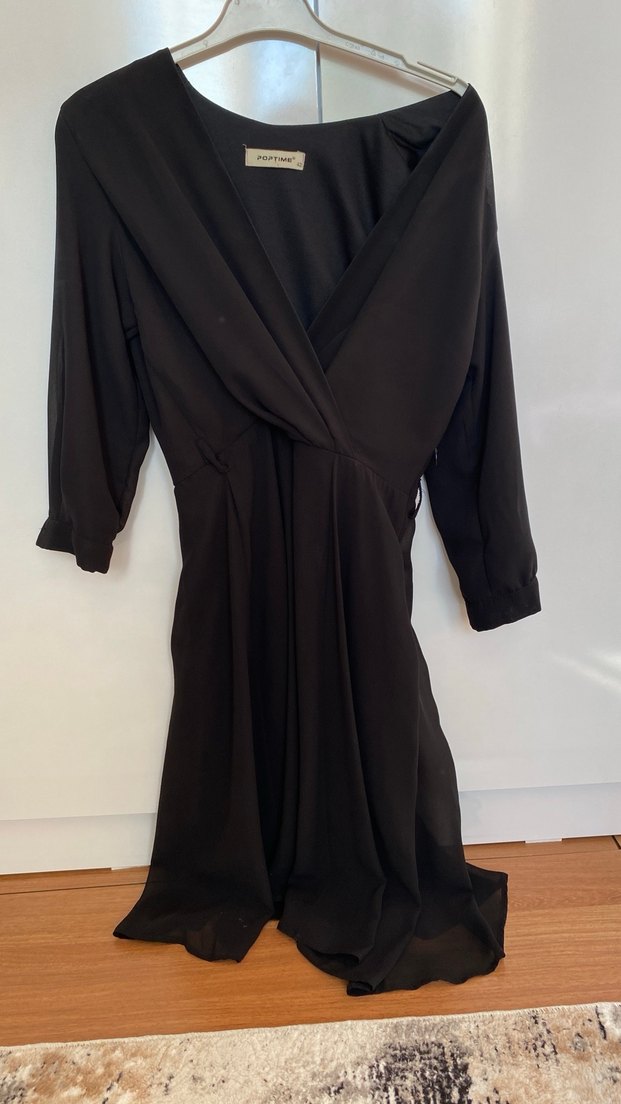 Siyah Uzun Kollu Kadın Uzun Elbise