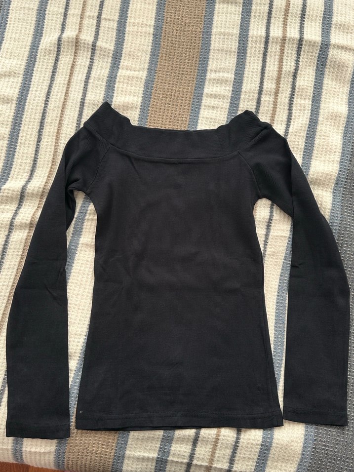 Siyah Uzun Kollu Kayık Yaka Bluz