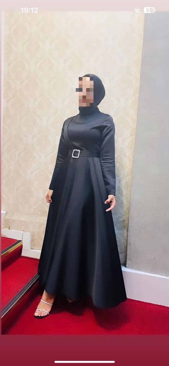 Siyah uzun kollu, yüksek yakalı ve kemerli bel detaylı, sentetik kumaştan yapılmış gotik tarzda günlük kullanıma uygun sade elbise. 36 38 beden uygundur