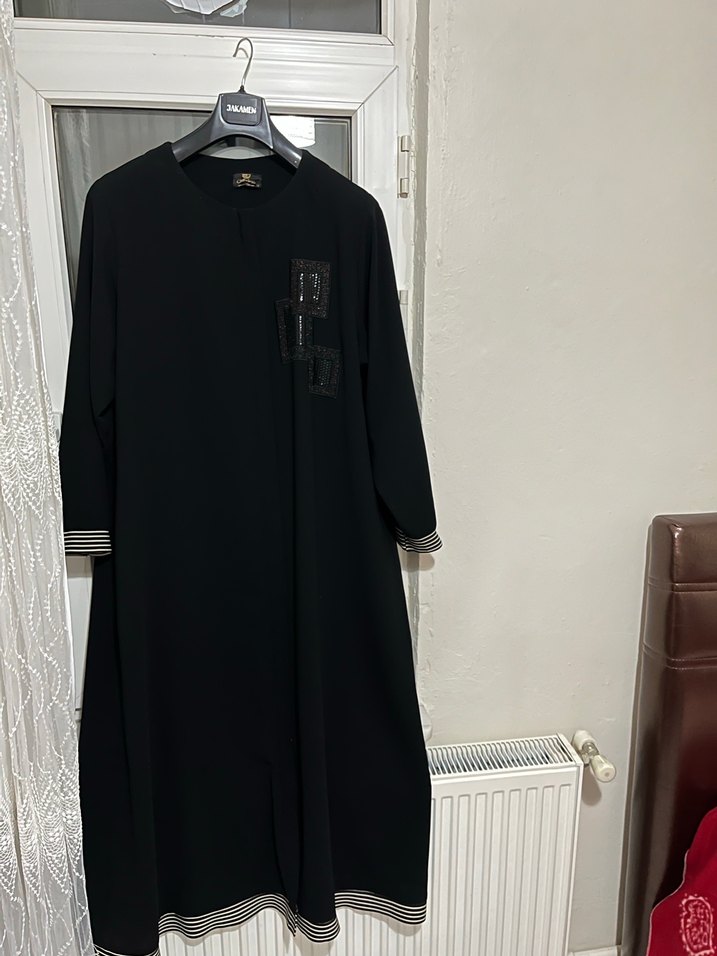 Siyah renkte, uzun kollu ve bisiklet yaka tasarıma sahip, kemerli günlük uzun elbise. Minimalist ve sade baskılı detaylarıyla rahat bir kesime sahiptir. Sıfır ürün