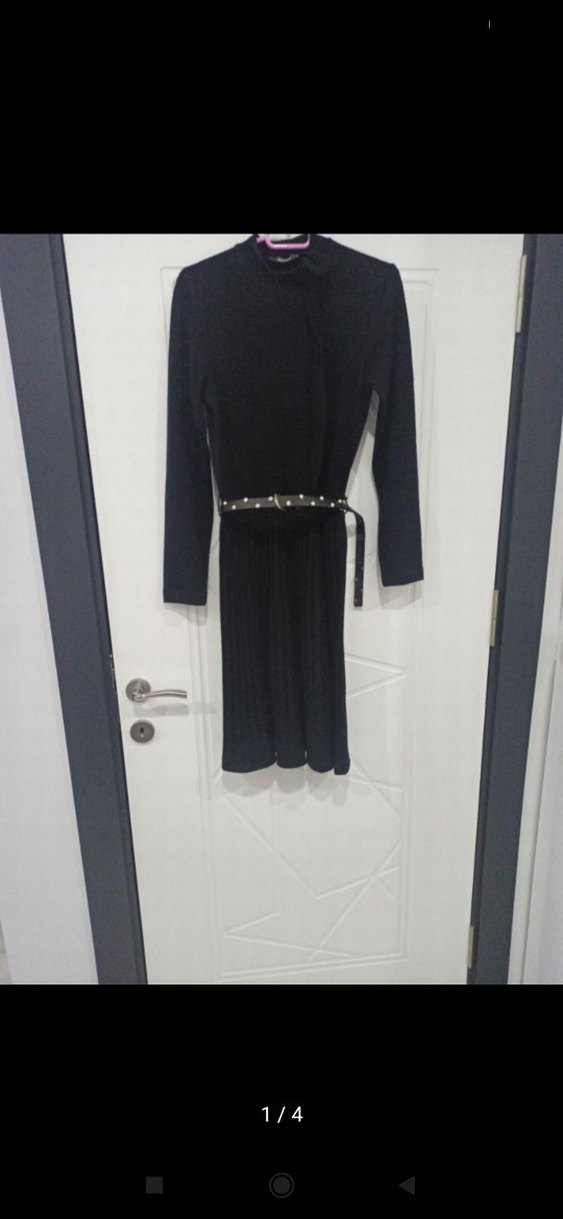 Siyah Uzun Kollu Kemerli Kadın Elbise