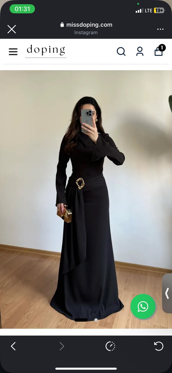 Bu siyah uzun elbise, yüksek yakalı, uzun kollu ve kemerli bir tasarıma sahiptir. İpeksi kumaştan yapılmış olup, ofis için uygun klasik gotik tarzda, normal kesimlidir.