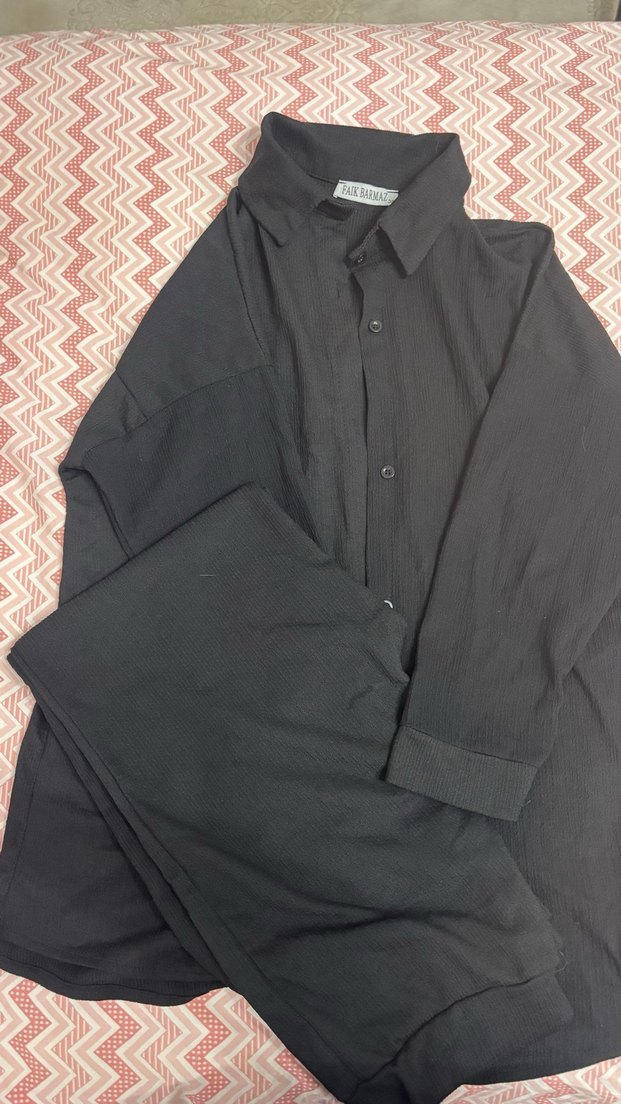Siyah Uzun Kollu Keten Gömlek Takım