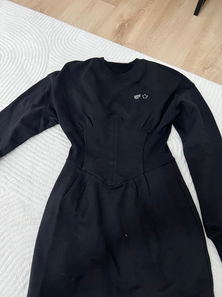 Siyah, uzun kollu, midi boy triko elbise. Yumuşak ve sıcak kumaştan, sade ve şık bir sokak stili sunar. Günlük kullanıma uygundur. M beden bir sorunu yoktur sıfır ürün beymendeb aldım
