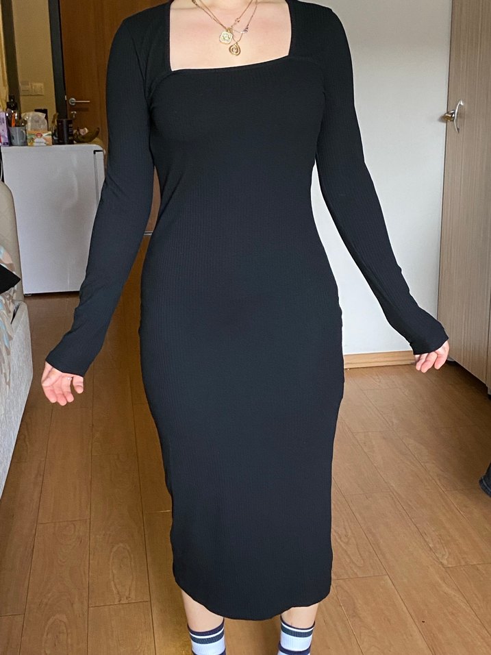 Siyah Uzun Kollu Midi Elbise