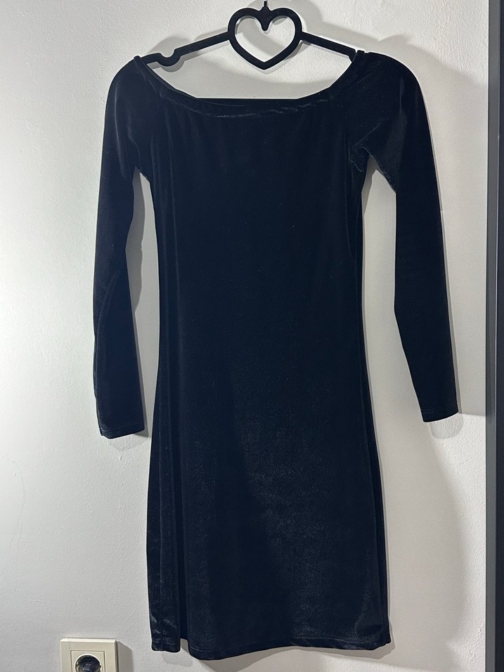 Uzun kollu, tek renk siyah midi elbise, tekne yaka ve drapeli detaylarla gotik tarzda şık bir görünüm sunar.