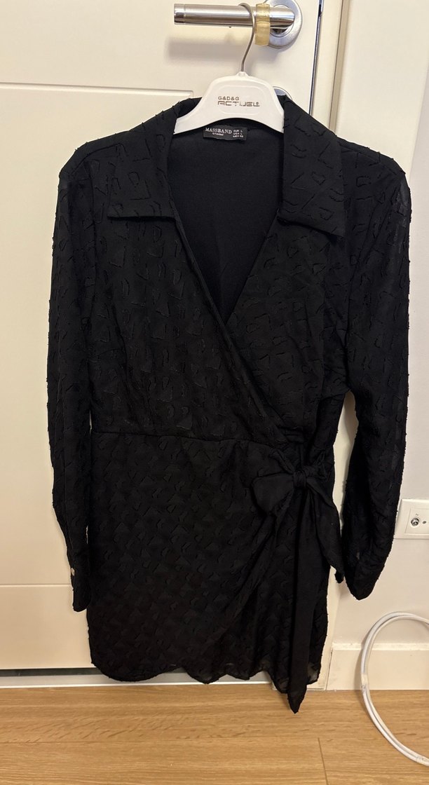 Uzun kollu, siyah ve hafif dokulu midi elbise, Paris tarzı gotik görünüm sunar, belde bağlama detayı bulunur. Elbiseyi hiç giymedim.