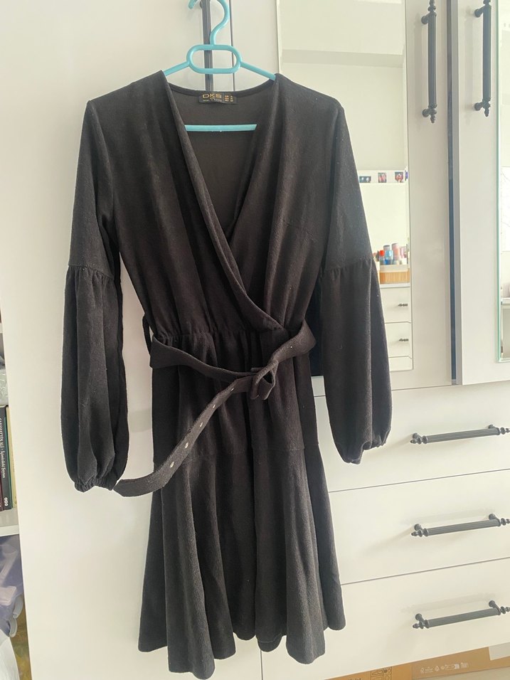 1 kere giyildi. Deformesi yok. Deniz butikten almıştım. Siyah renkte, uzun kollu ve bol kesim midi elbise. Kuşaklı ve sarmalı tarzda, desensiz ve rahat gotik görünümlü.