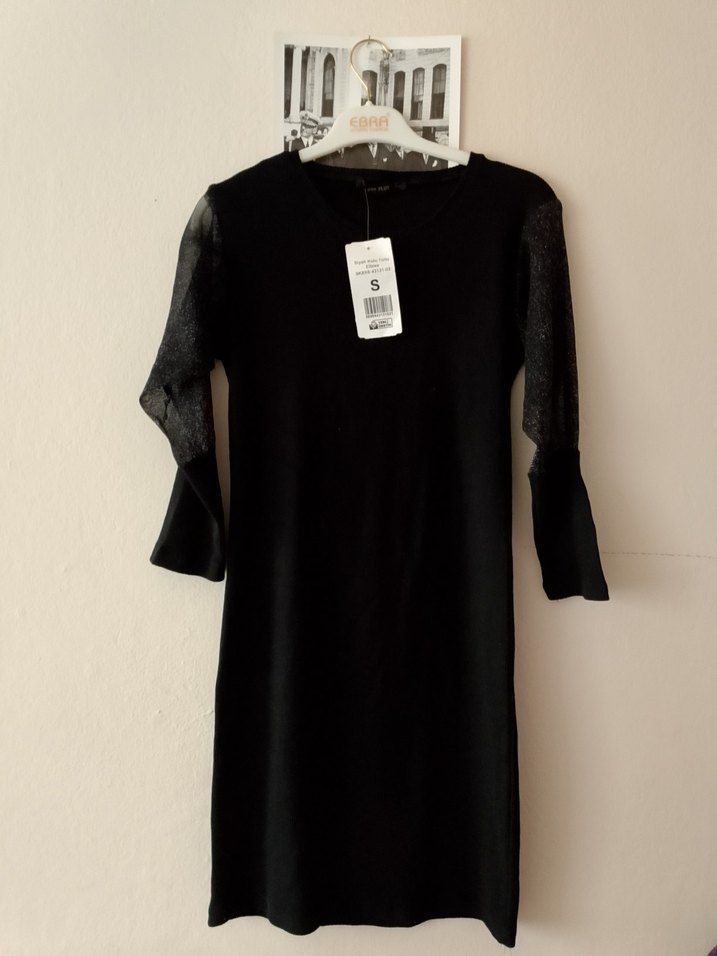 Siyah renkli, uzun kollu ve keten kumaştan yapılmış, vücuda oturan midi elbise. Günlük kullanım için uygun, gotik tarzda şık bir parça.