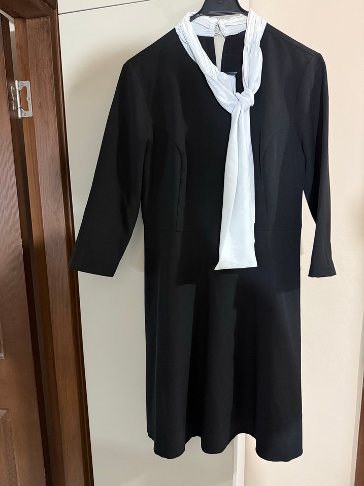 Siyah Uzun Kollu Midi Ofis Elbisesi