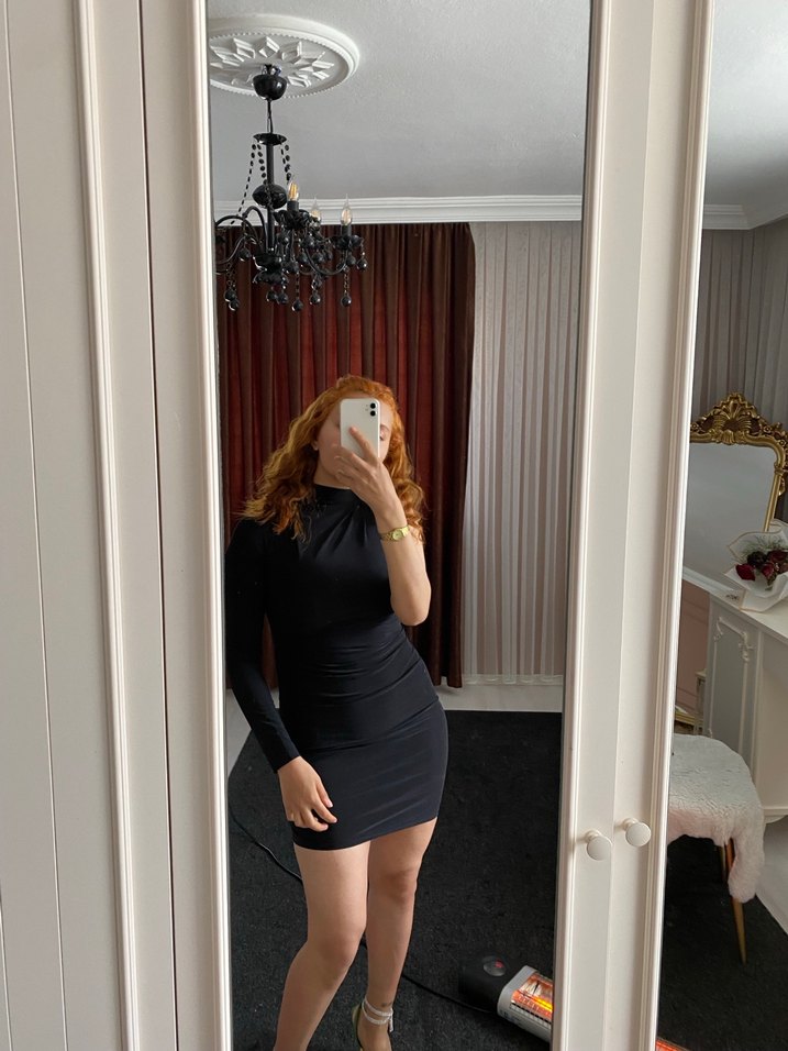 Siyah Uzun Kollu Mini Elbise
