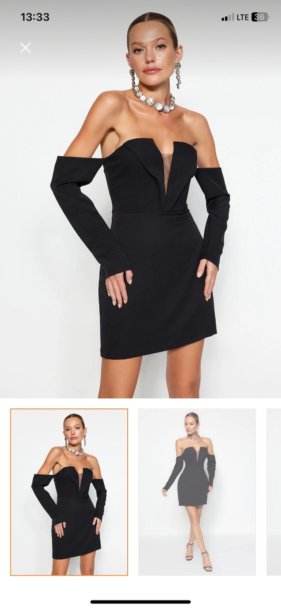 Uzun kollu, V yakalı ve yırtmaç detaylı siyah mini elbise. Pürüzsüz sentetik kumaştan, romantik akşamlar için ideal. Ürün sadece 1 defa 2 saat giyildi temizdir