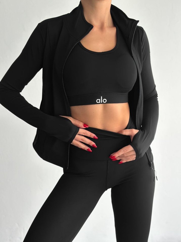 Siyah, uzun kollu, kısa kesim ve dar kesim spor üst. Yumuşak sentetik kumaştan, 'alo' logosu ile dikkat çeker. alo 3lu takım S1 M2 L1 XL1 XXL1