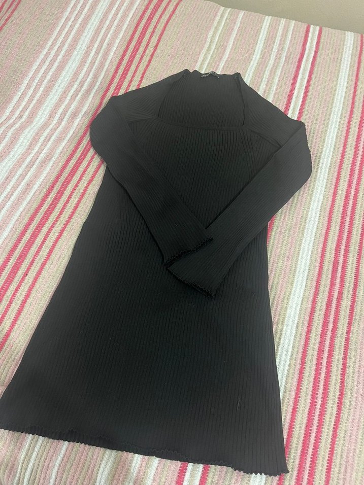 Siyah Uzun Kollu mini Triko Elbise