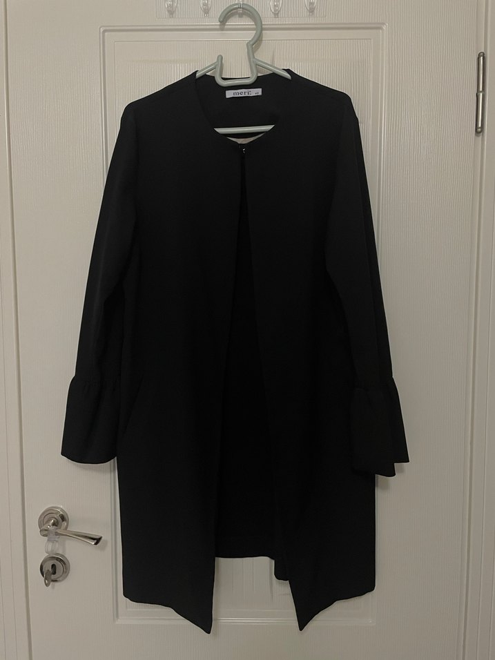 Siyah renkli, uzun kollu ve keskin yaka detaylı ceket, yumuşak kumaştan üretilmiştir. Düzenli kesimi ve desensiz tasarımıyla ofis için şık ve rahat bir tercih sunar. Kol ve cep detayları mevcuttur. Ayrıca yaka bölgesinde kancası de vardır. 1 kez giyilmiş tertemiz bir üründür.