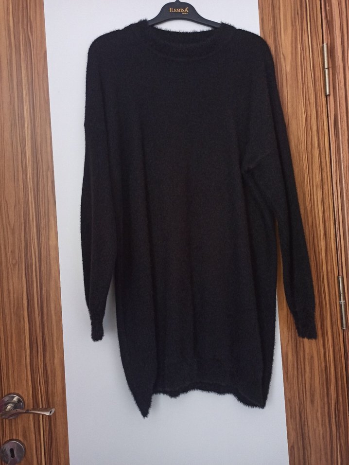Siyah renkli, yumuşak yünden örülmüş, uzun kollu ve yuvarlak yakalı, salaş kesim kadın kazak. Rahat ve günlük kullanım için uygundur. Hiç giyilmedi sıfır ürün standart beden