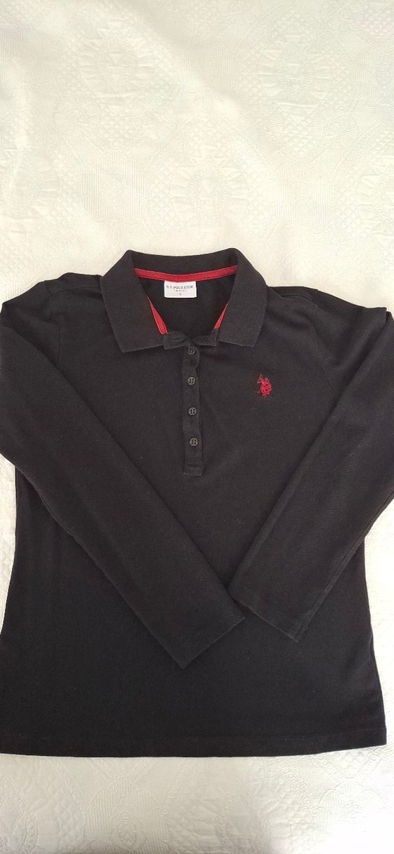 Siyah renkli, uzun kollu, düğmeli ve yakalı, kızlar için dar kesim polo tişört. Yeniden farkı yok. S beden. 2 kere anca giyildi. #Uspolo #poloyaka #siyahpolo