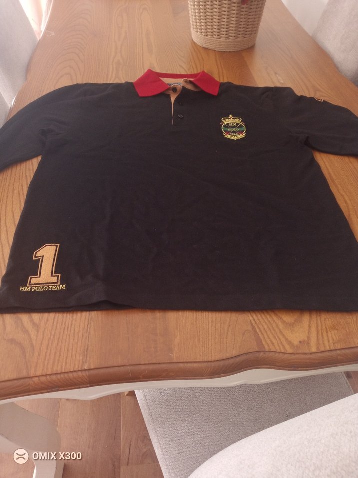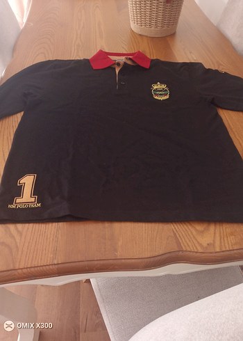 Kırmızı yakalı siyah uzun kollu polo yaka tişört, düğmeli yakaya ve baskılı detaylara sahip, rahat ve sıcak kumaştan üretilmiştir. 2 koltuk arası 60 cm uzunluk 72 cm geniş kalıp