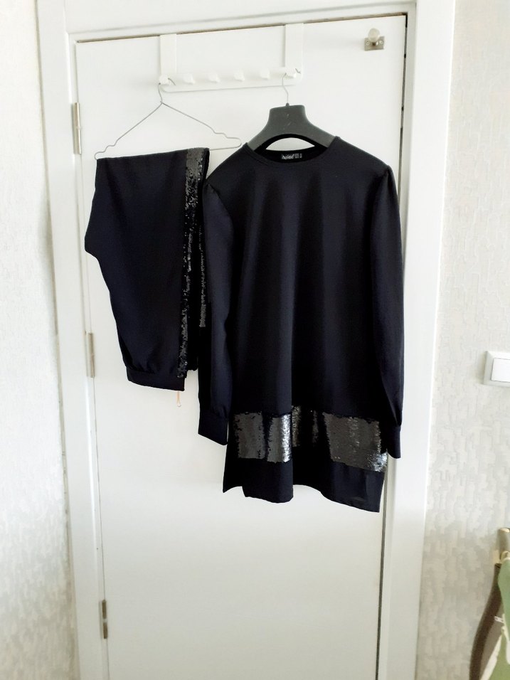 Ürünümüz tertemiz ve sorunsuz,abiye alt üst takım. Ben bu ürünü 1.68 cm boy ve 66 kg da çok rahat bi şekilde giydim.Ürünün kumasi yumuşak, kırışmayan, ütü istemeyen esnek bir kumaştır. Tunik ;bisiklet yaka .etek ucu pul palet işlemeli ve yanlardan küçük yırtmaçlı.Tunik boy84 cm ,iki kol arası 53/54cm ve ayrıca en az 3/4cm esneme payı var.Pantolom:beli lastikli normal bel dır. Boyu 100cm ,paça genişliği 30 cm dir .pantolonun yanları boydan boya pul palet işlemeli dir.