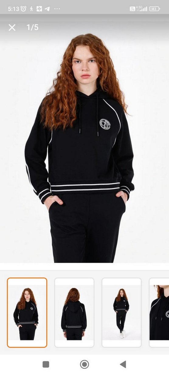 Siyah renk, uzun kollu ve yuvarlak yaka sweatshirt, rahat ve bol kesimdir. Beyaz çizgi detayları ve küçük logo ile spor ve günlük tarz için uygundur.