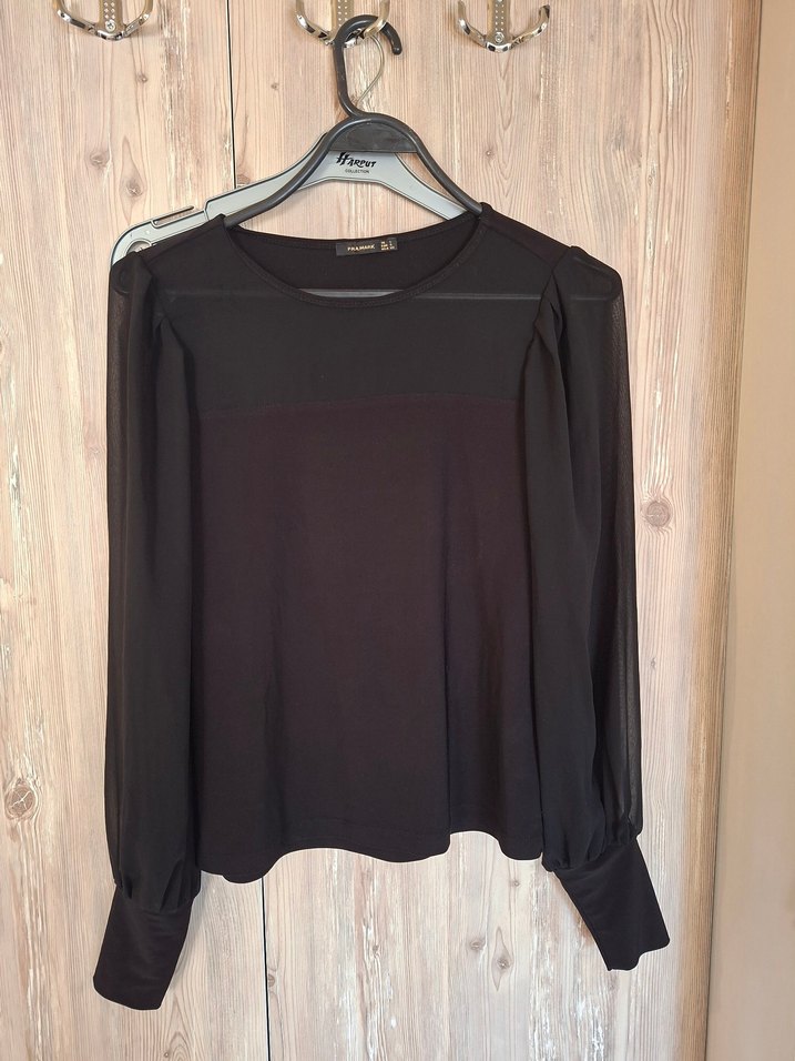 Siyah uzun kollu, yuvarlak yaka ve salaş kesime sahip bluz, yumuşak sentetik kumaştan üretilmiştir. Minimalist tasarımıyla ofis için uygun, zahmetsiz şıklık sunar. Kollar ve bedenin üst kısmı şifondu kol uçları ve bedenin geri kalan yerleri jarse kumaştır. #paul&mark boy 56 cm iki kol arası 43 cm