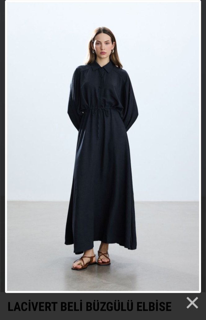 Siyah renkli, uzun kollu ve yakalı, salaş kesim kadın elbisesi. İnce ve ipeksi kumaştan, minimal ve sade tarzda, günlük kullanıma uygun. kalıbı geniş be blue marka