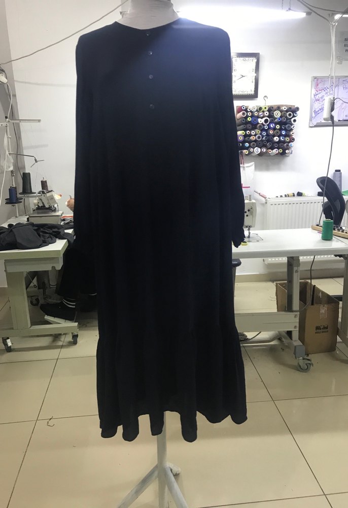 Bu siyah uzun kollu elbise, salaş kesimi ve drapeli detaylarıyla dikkat çeker. İpek gibi dokusuyla günlük kullanıma uygundur. 50beden Hiç GİYİLMEDİ ÖZEL DİKİM 1.30