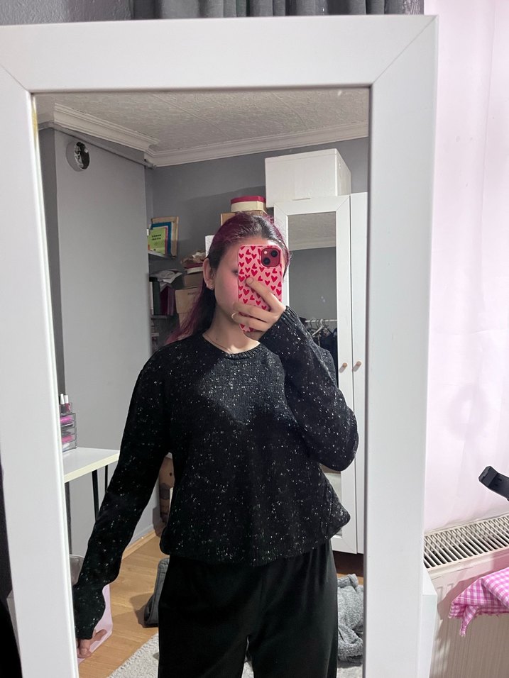 Siyah, Uzun Kollu, Salaş Kadın Kazak - Görsel 1