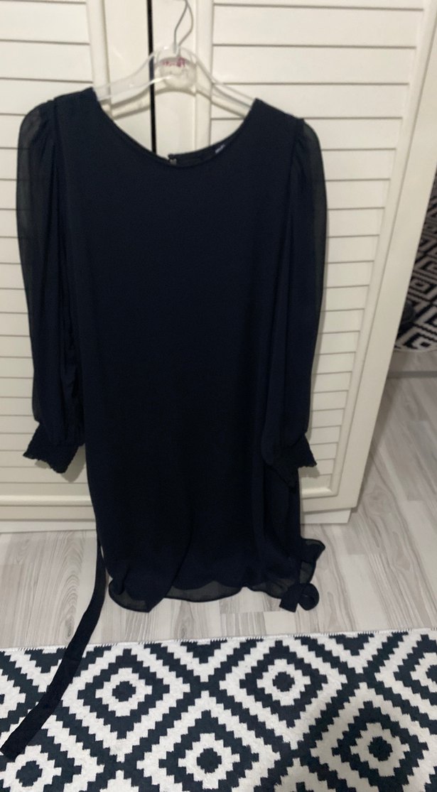 Siyah, uzun kollu, salaş kesim ve drapeli detaylara sahip kadın tunik. Düz, sentetik kumaştan üretilmiştir, ofis kullanımı için uygundur.