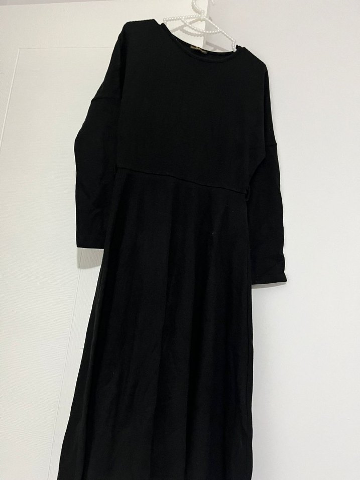 Siyah Uzun Kollu Salaş Keten Elbise