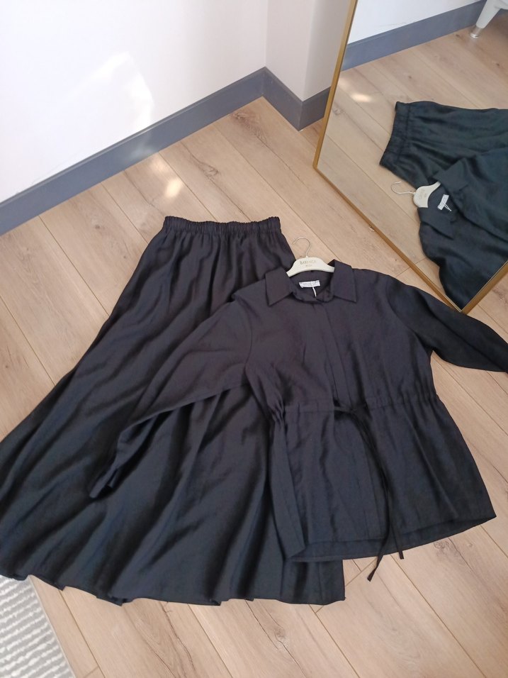 Siyah Uzun Kollu Salaş Keten ikilitakım