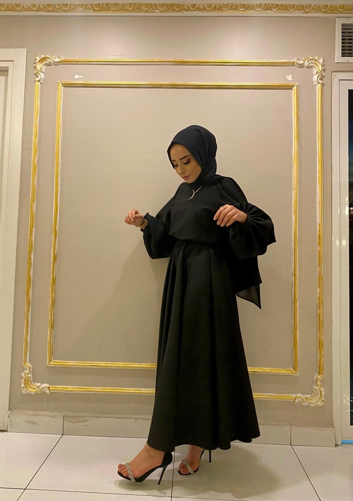 Siyah Uzun Kollu Salaş Siyah etekli takım