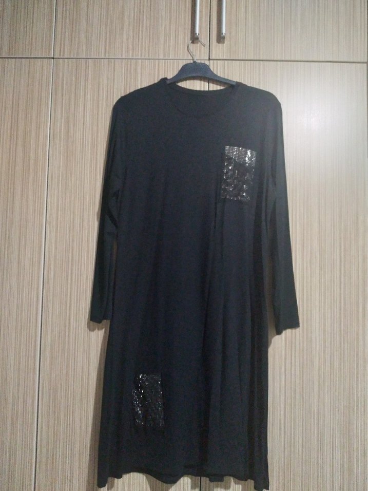 iki kol arası 53 uzunluk 110 santimSiyah uzun kollu, salaş kesim tunik. penye kumaşı yuvarlak yaka günlük kullanıma uygun.