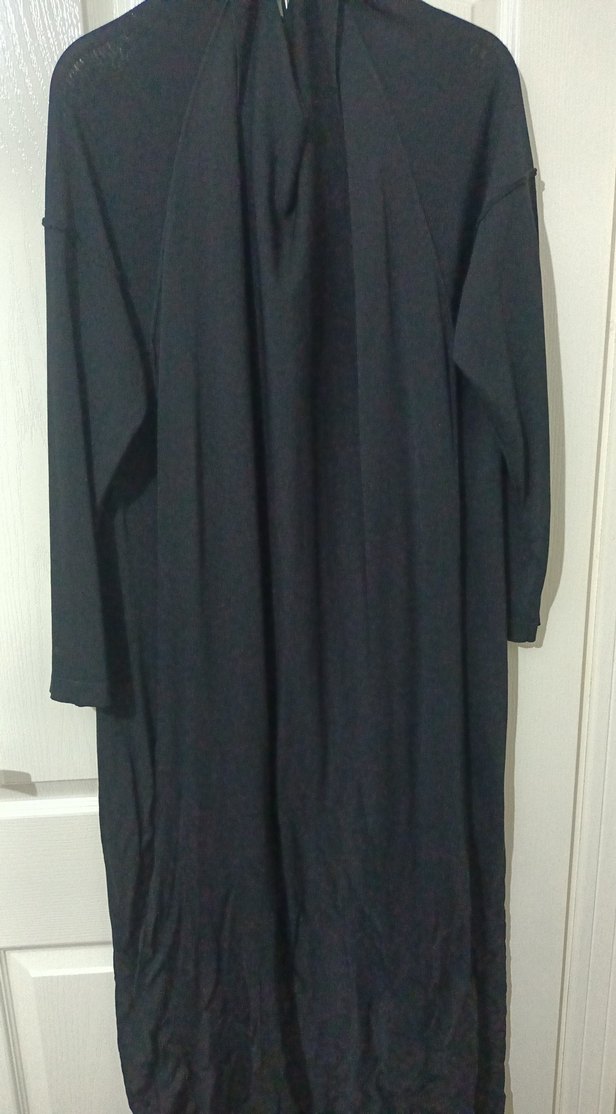 siyah-lacivert arası bir renkte uzun hırka 2 beden hırkanın modeli gereği dikişler dışa doğru yapılmış. parlaklığı açarak mankenin üzerindeki modeli ve benim gönderdiğim modeli karşılaştırabilirsiniz.